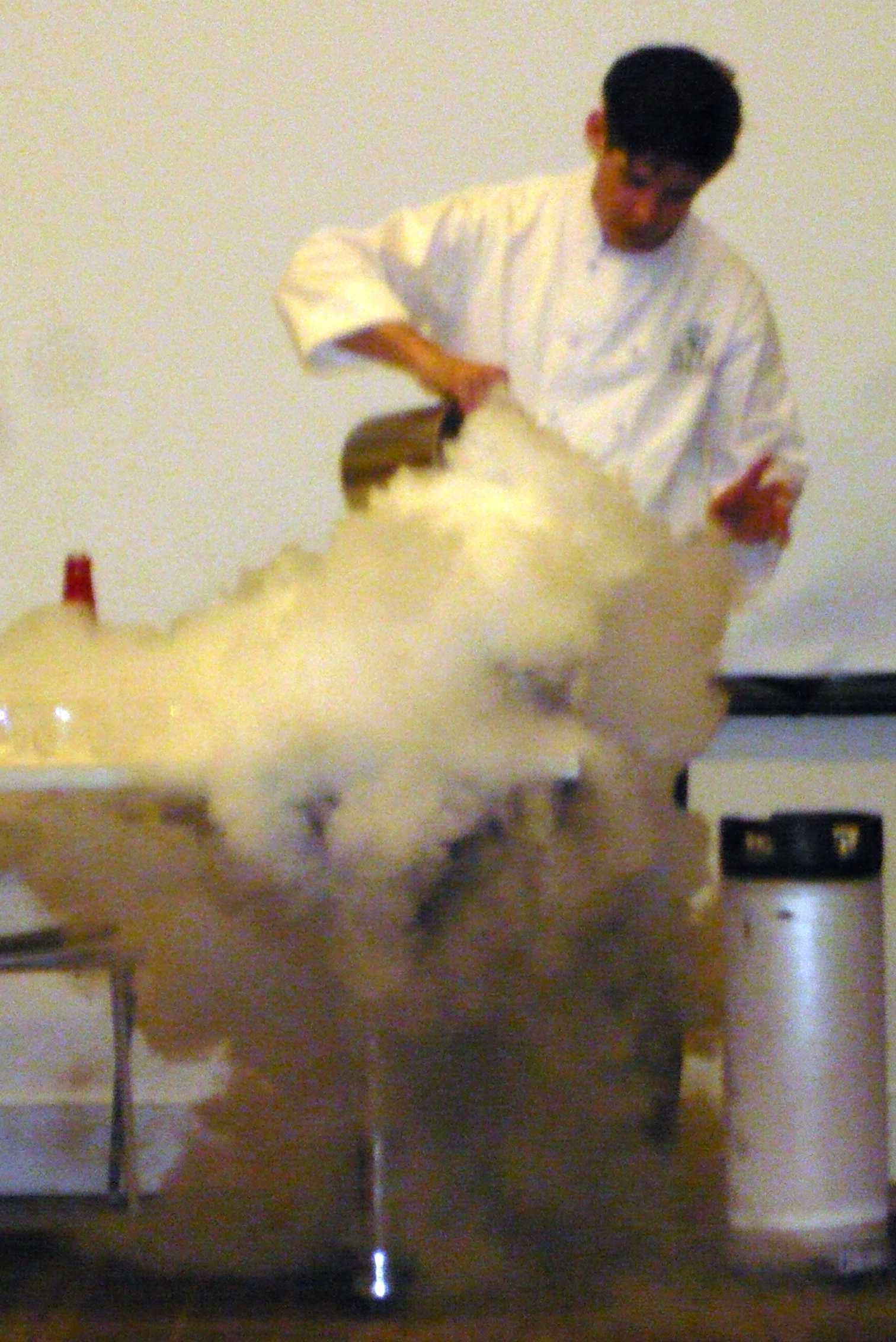 Dave Arnold, who blogs less frequently than his audience would prefer at cookingissues.com, spectacularly produced this technological delight for me and my classmates last night at the French Culinary Institute.