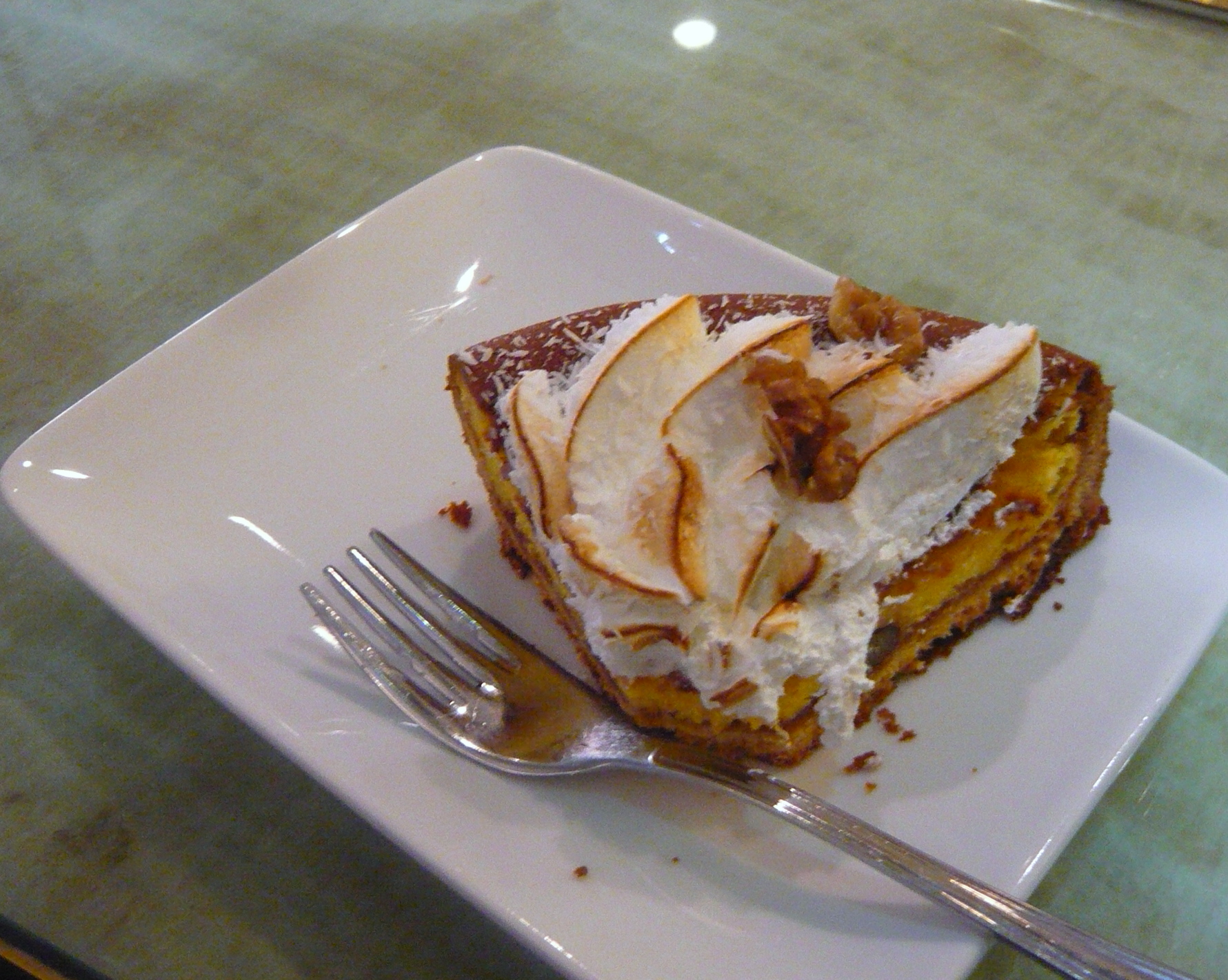My friends ate the croissants. I had to sample one of the fabulous-looking cakes. It was a nearly impossible decision but I finally selected a crostata di mascarpone e mandorle (almonds.) It was creamy, not too sweet, with a dry, crumbly, crust, like most Italian cakes.
