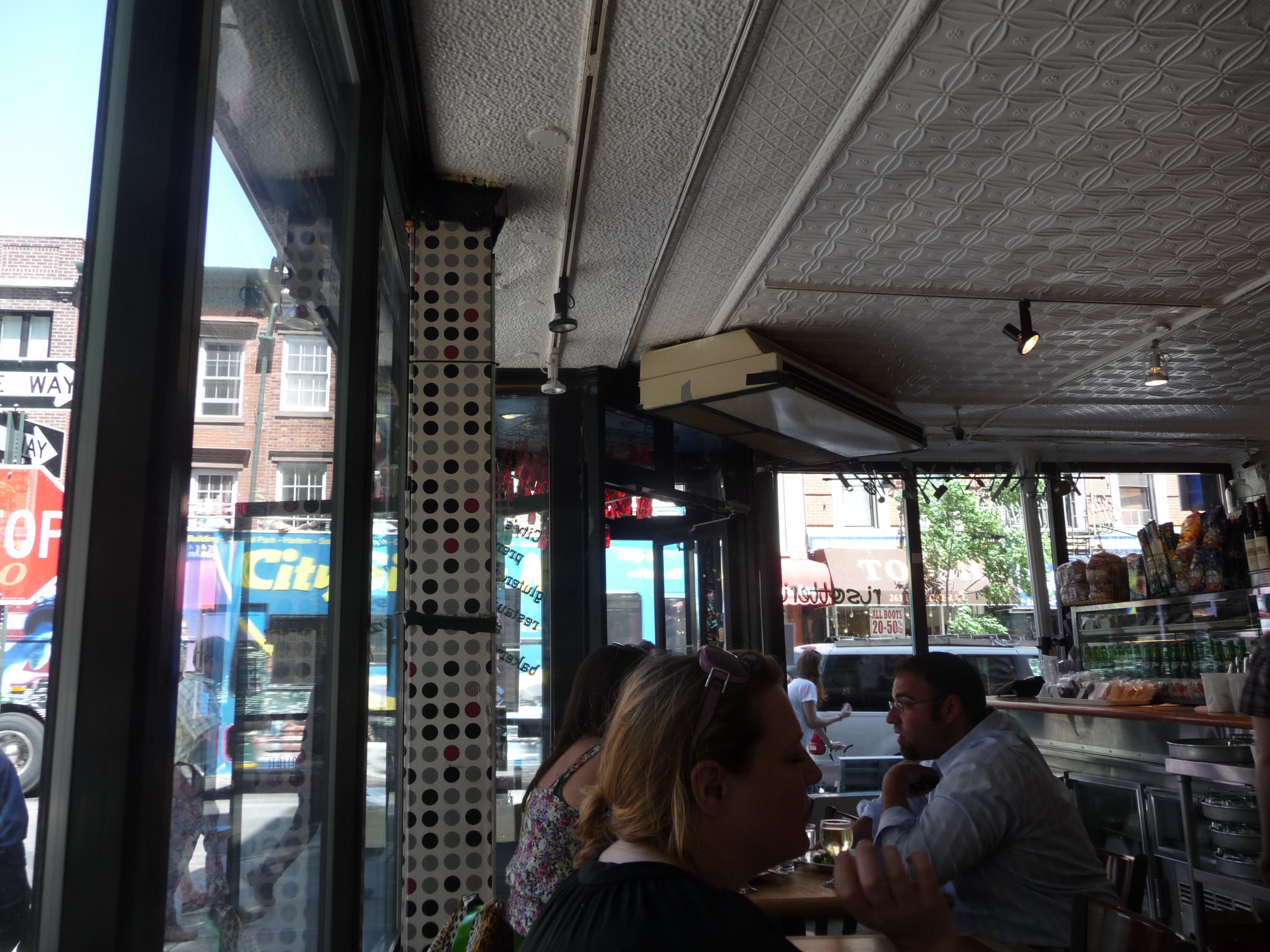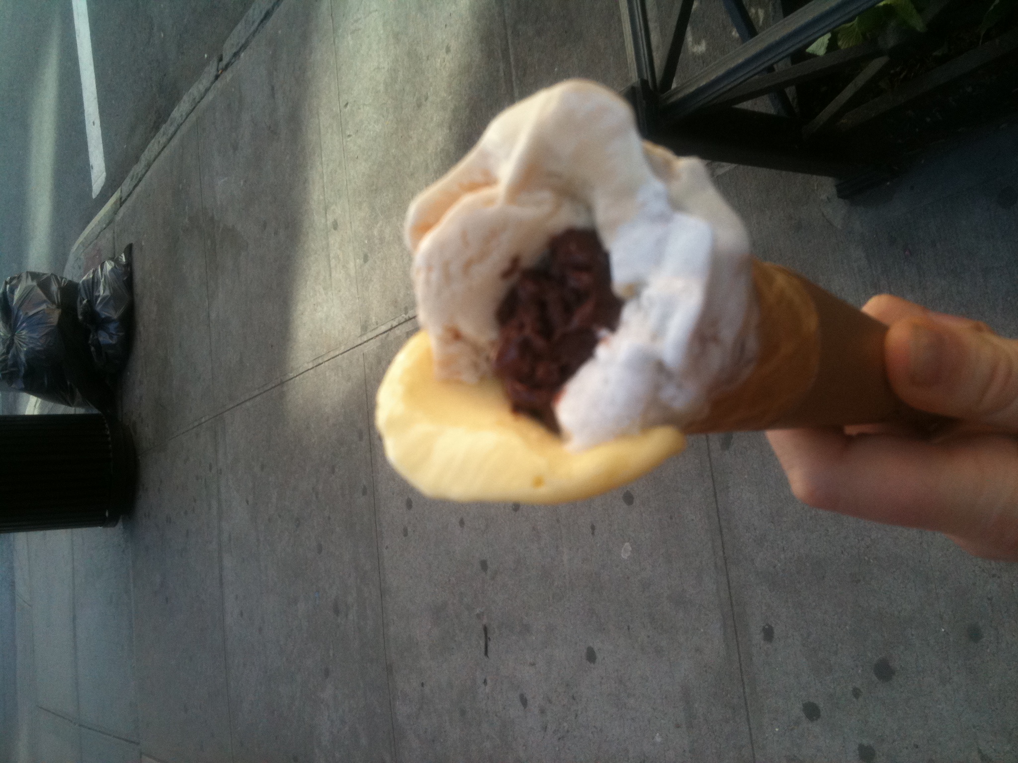 This gelato chain (location in Italy: Milan) is famous for shaping its many flavors of gelato into flowers with different-flavored petals.  I’m all for it.  Today was their first day in America (welcome to America!! Yay!) and they treated New Yorkers to free cones and cups from 4-7pm.  Joyce and I debated waiting in line (well, I knew we were going to do it, but I pretended to debate), which looked intimidatingly long, but a friendly pregnant woman emerged with her friends, happily licking a cone, and assured us that the wait was only 20 minutes and so worth it.  Another friendly onlooker urged us to wait in line while we considered it, especially since it was the best spring day New York’s had so far.