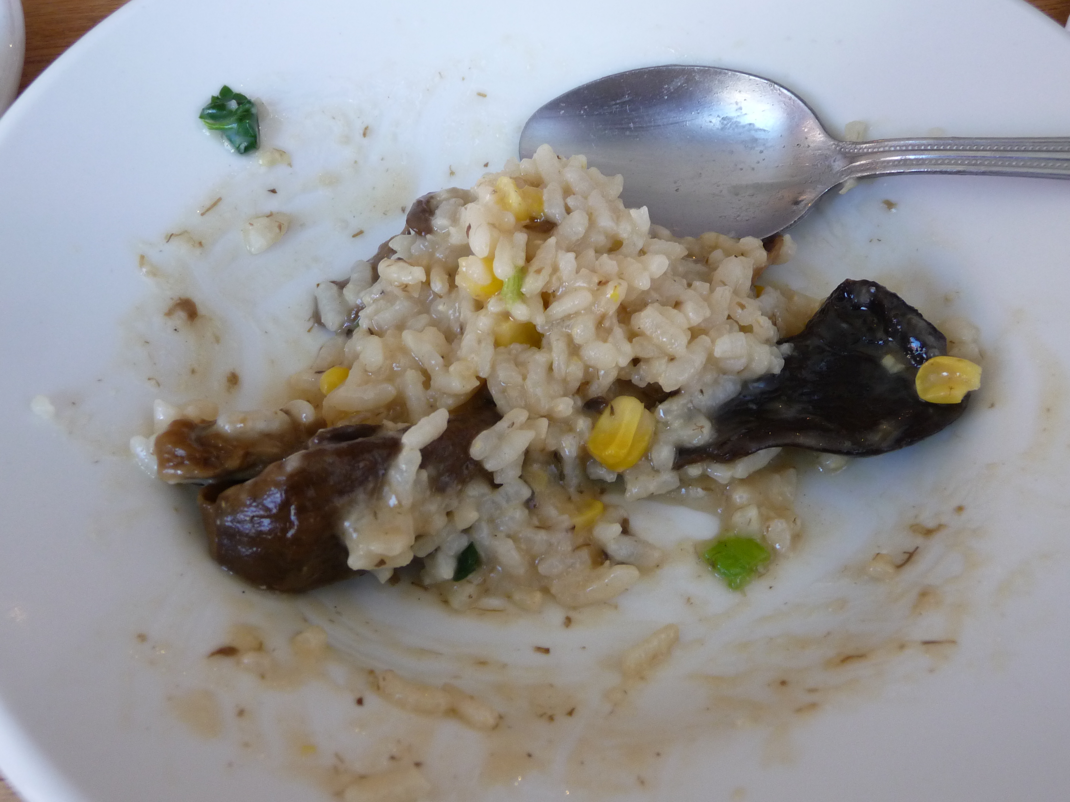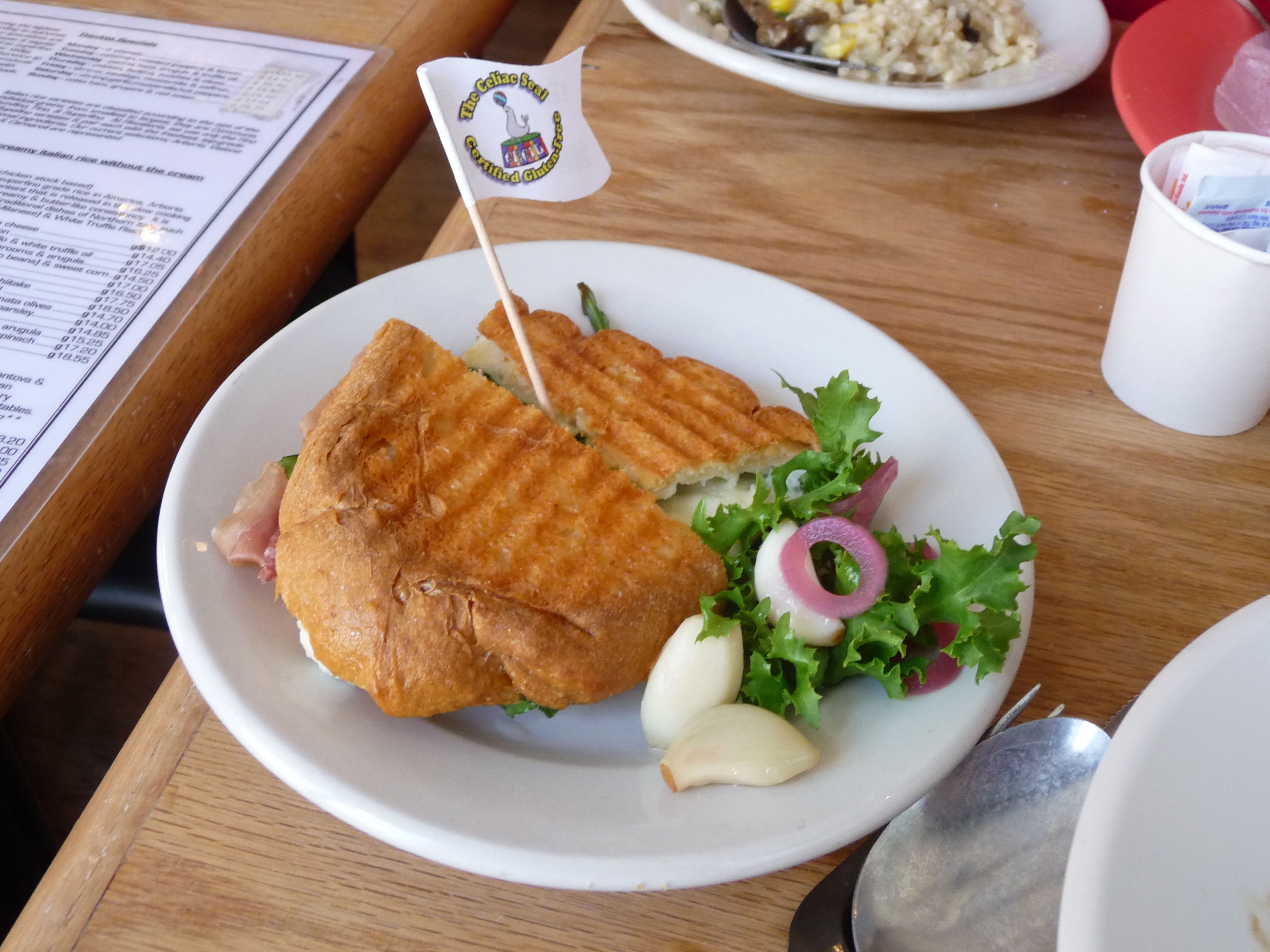 It’s an ALL GLUTEN FREE restaurant.  Seriously!  And not only that–it’s actually cute inside. And the food is good.  And the menu is HUGE.  So huge that I had no idea what to order and had to ask the waitress what she recommended–and then she recited so many customer favorites that I lost track after truffle oil.  So truffle oil it was– porcini mushroom, sweet corn, and truffle oil risotto, that is.  The risotto list was super long and included ingredients like zucchini, shrimp, mozzarella, fontina, and portabella mushrooms, all in different mouth-watering combinations.  We also selected a panini from a similarly long list including various combinations of arugula, sun-dried tomatoes, prosicutto, prosciutto cotto, soppressata, coppa, mozzarella, and fontina.  We chose the prosciutto and fontina panini on gluten-free bread.