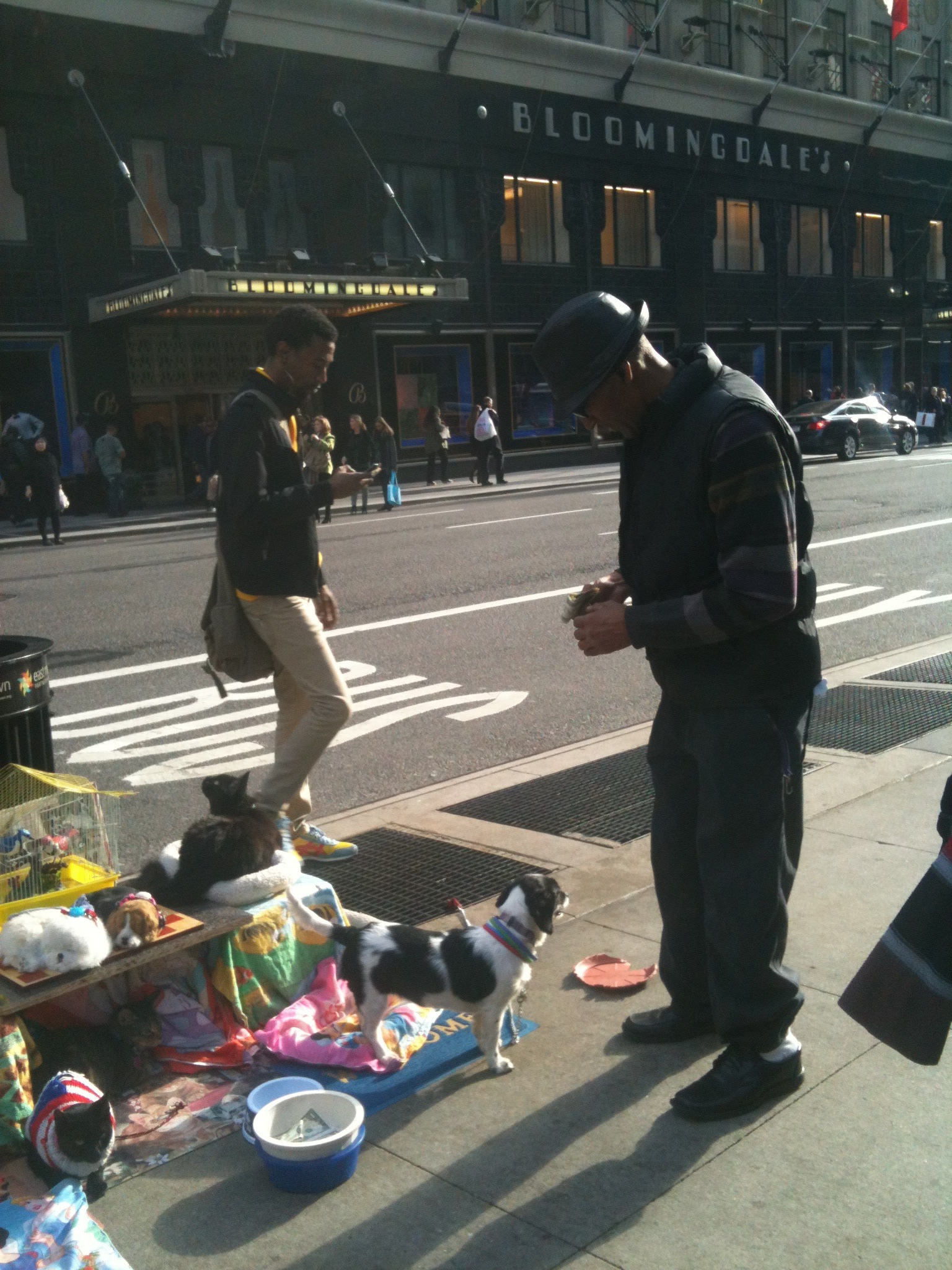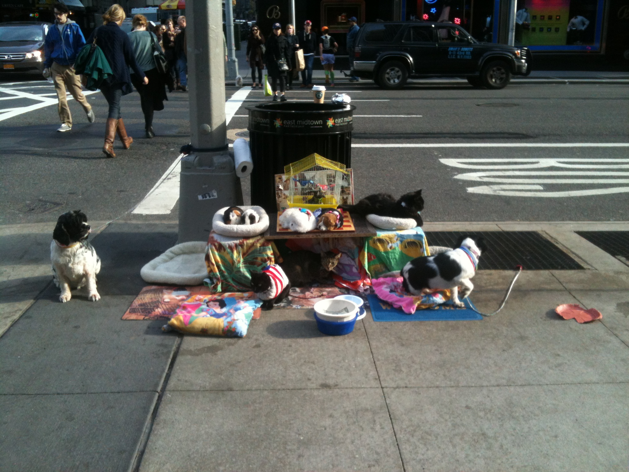 As I exited from the 4 train at 59th & Lex today, as I do every Monday-Friday to go to work, I didn’t follow the shops down Lexington and then turn left on 55th, across from a church and passing 2 Starbucks and 2 Vegetarian Snackbars on my way. Instead, I turned north and walked uptown one block, where I encountered the following scene on the busy southwest corner of 60th and Lexington:
